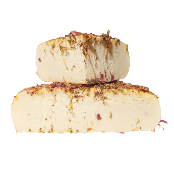 Een voorbeeld van Belgisch kaasambacht dat zowel smaak als esthetiek combineert. Het gebruik van rauwe melk en decoratie met bloemen maakt deze kaas uniek, terwijl de rijping een rijke en complexe smaak ontwikkelt.