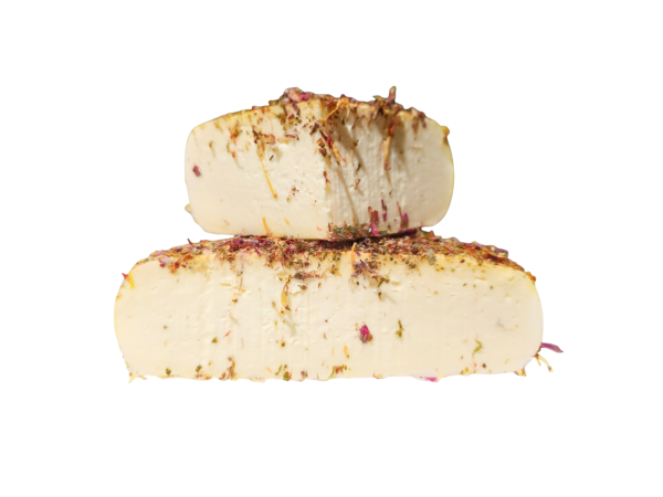 Een voorbeeld van Belgisch kaasambacht dat zowel smaak als esthetiek combineert. Het gebruik van rauwe melk en decoratie met bloemen maakt deze kaas uniek, terwijl de rijping een rijke en complexe smaak ontwikkelt.